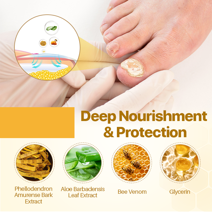- Bee Venom: A key ingredient that stimulates microcirculation around the nails, improving blood flow and nutrient delivery. This enhanced circulation supports the natural healing process, combats fungal infections, and strengthens nails for better health. 🐝