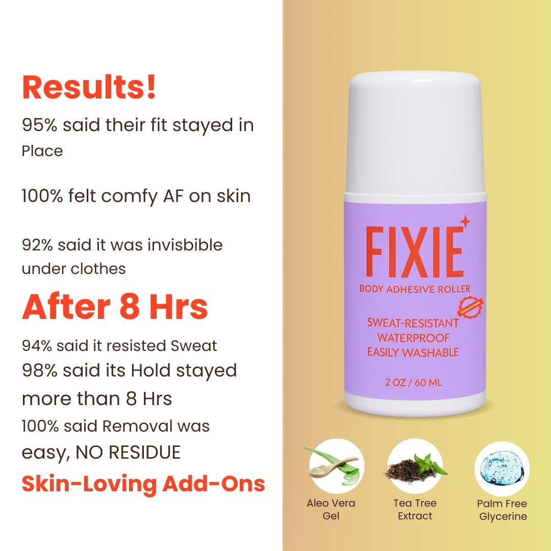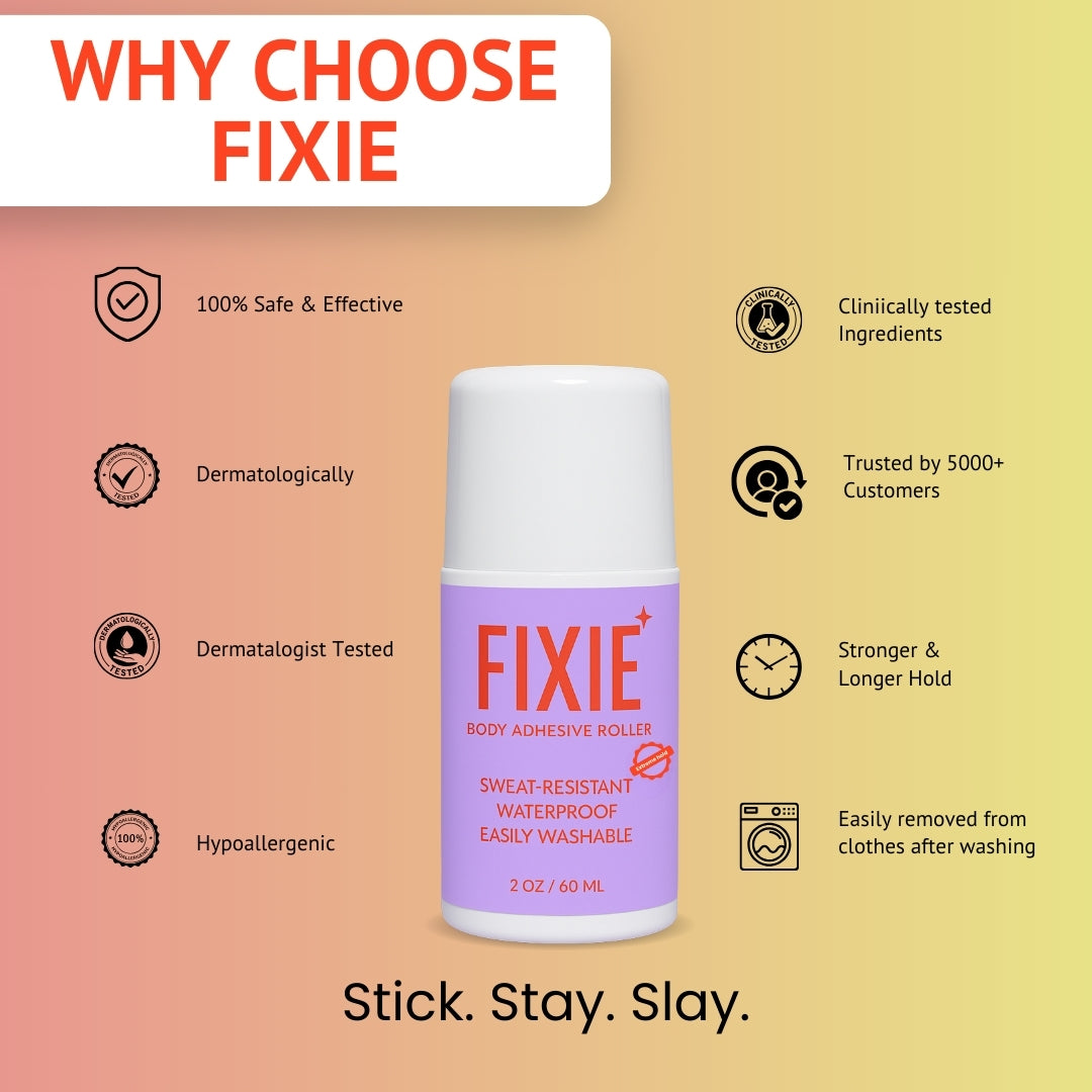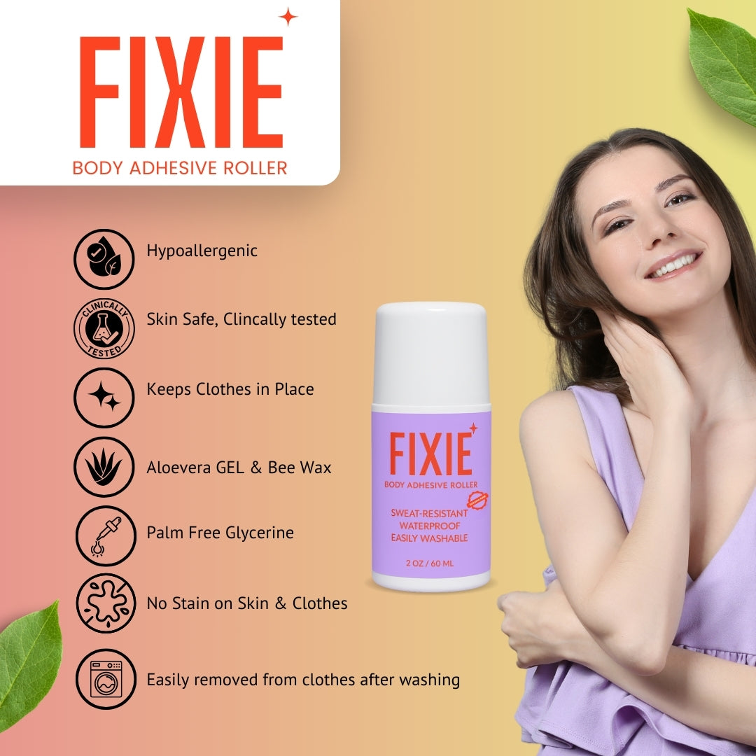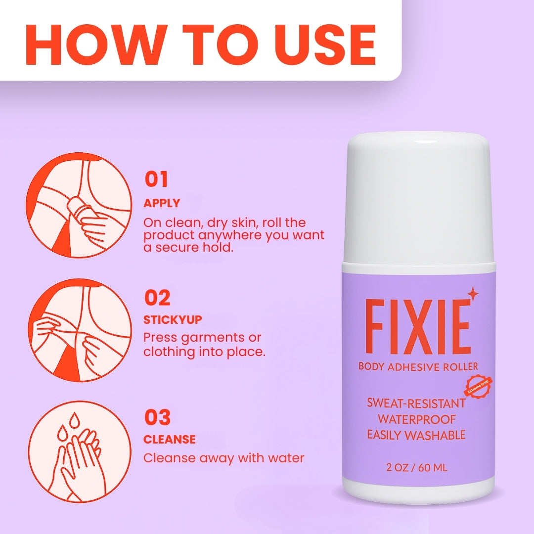 The Fixie Body Adhesive Roller is your all-in-one quick fix for skin, clothes, and lifestyle grooming. Compact, easy, and effective—once you try it, you won’t leave home without it.