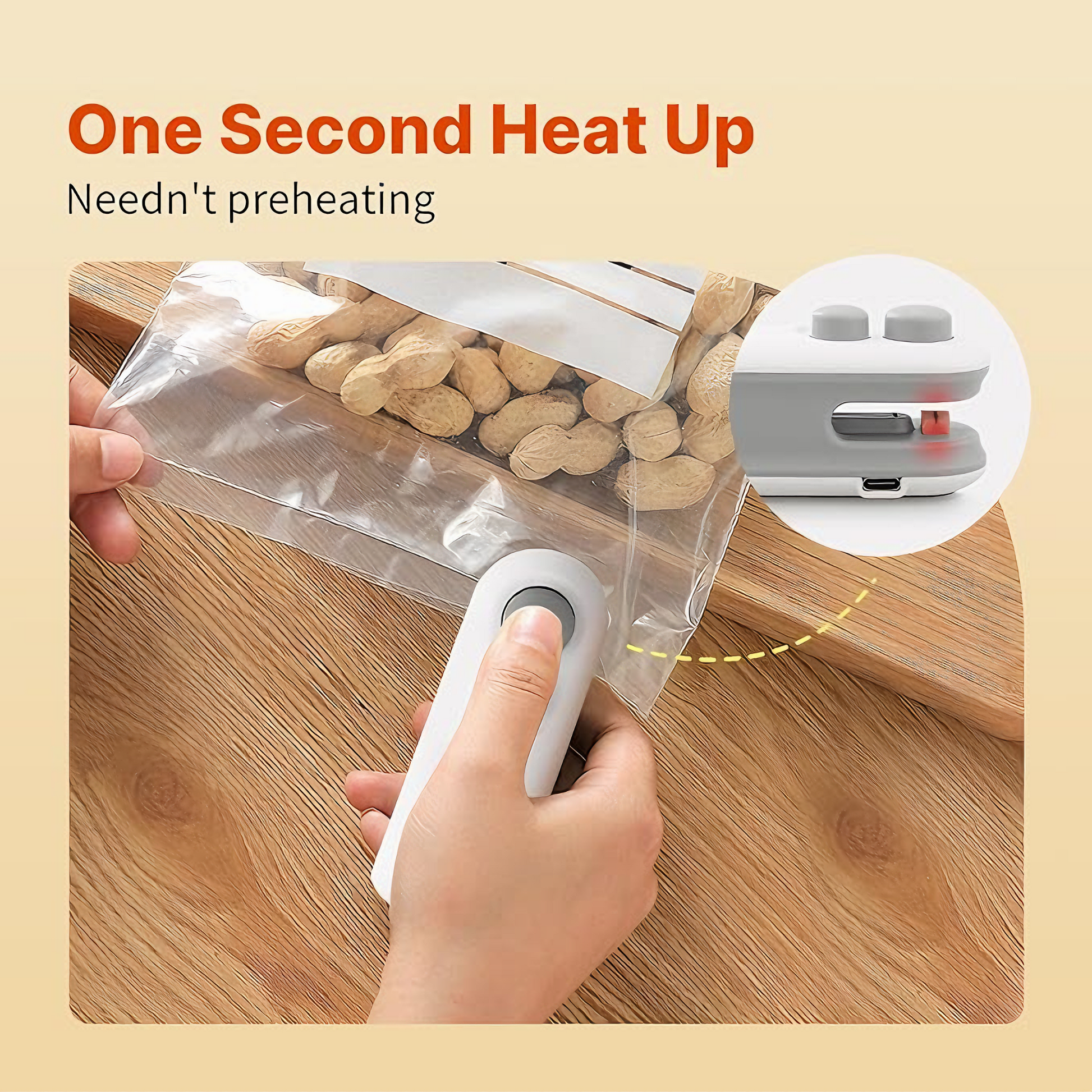 The Mini Bag Sealer is highly portable and lightweight. Its compact design fits easily in your hand or bag, making it perfect for home use, picnics, or travel.