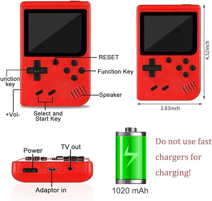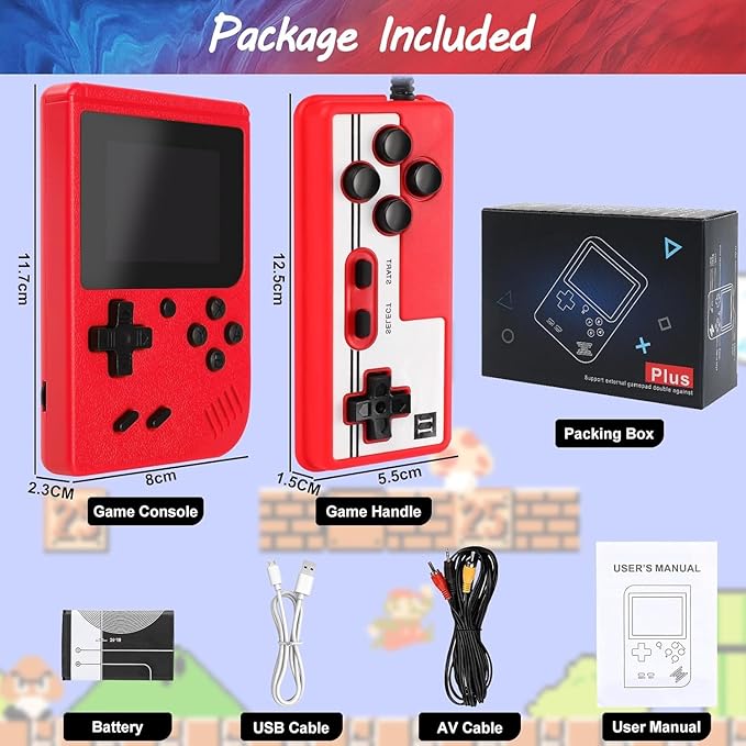 Relive the nostalgia of classic gaming with our Retro Game Console, a handheld powerhouse packed with 400 built-in games from the 8-bit and 16-bit eras. Enjoy iconic titles and hidden gems on the go or on your TV, with a sleek design that pays homage to the classic consoles of yesteryear.