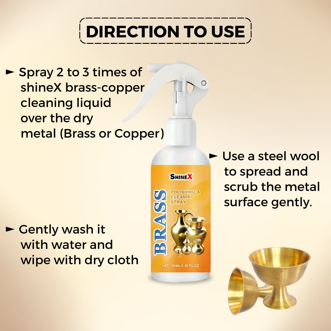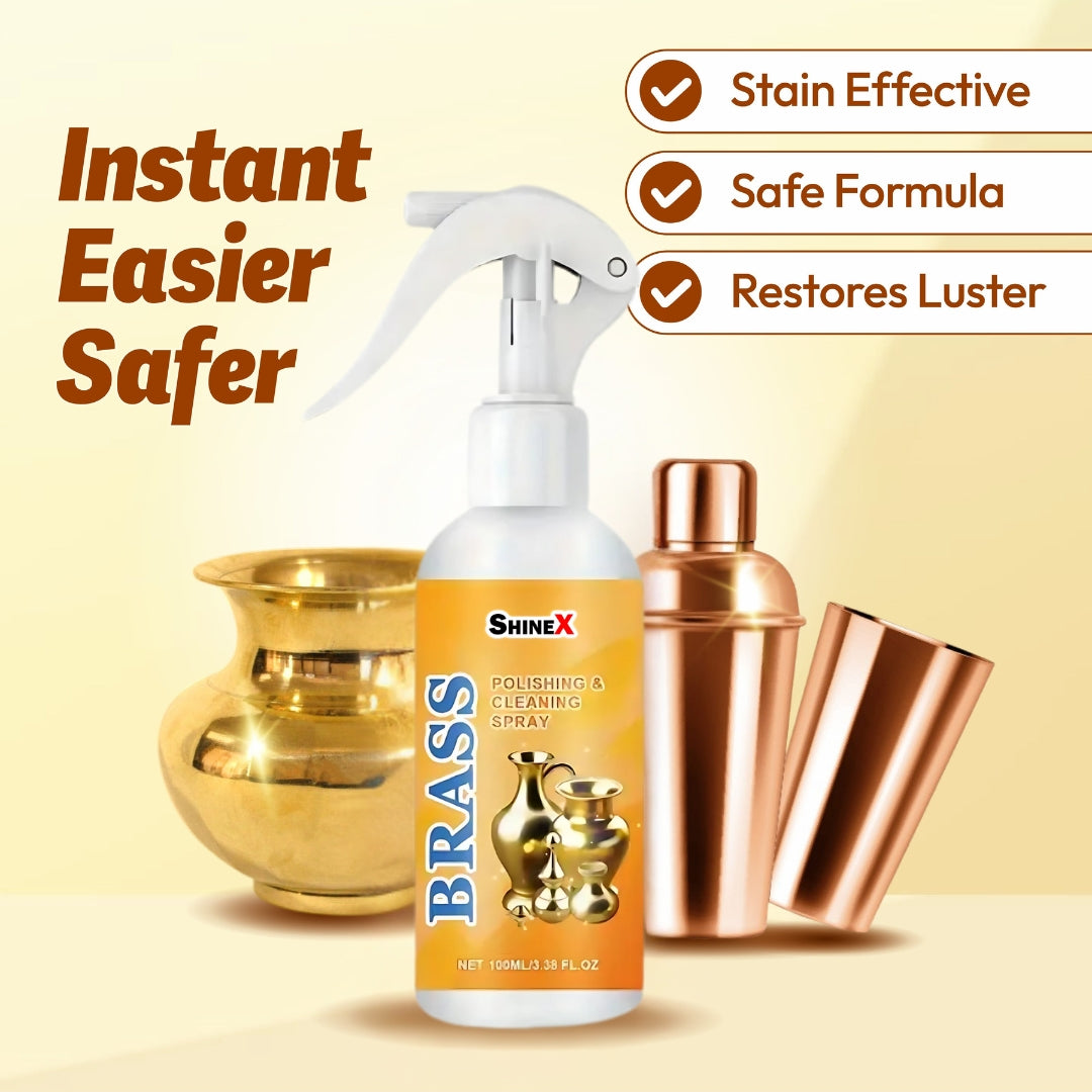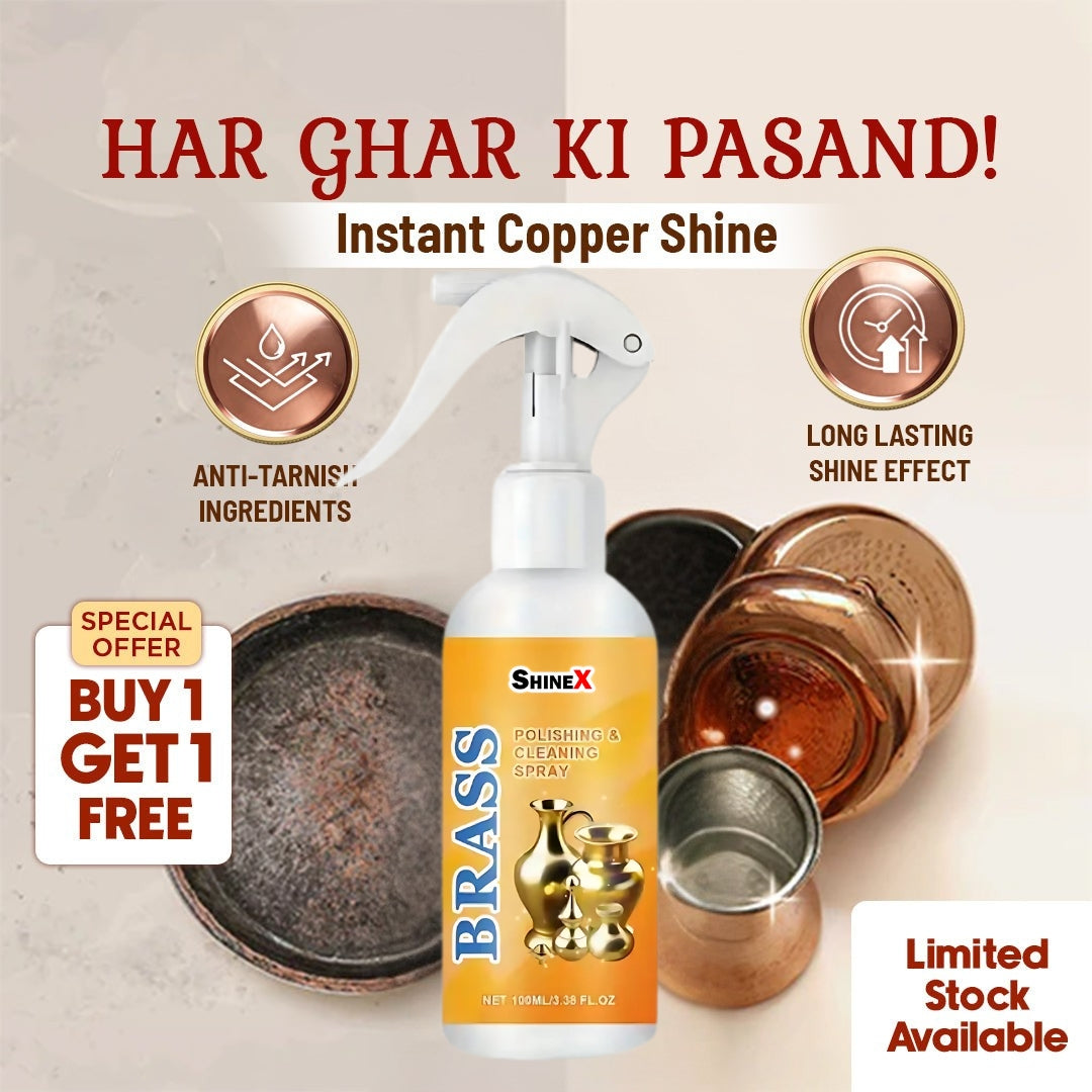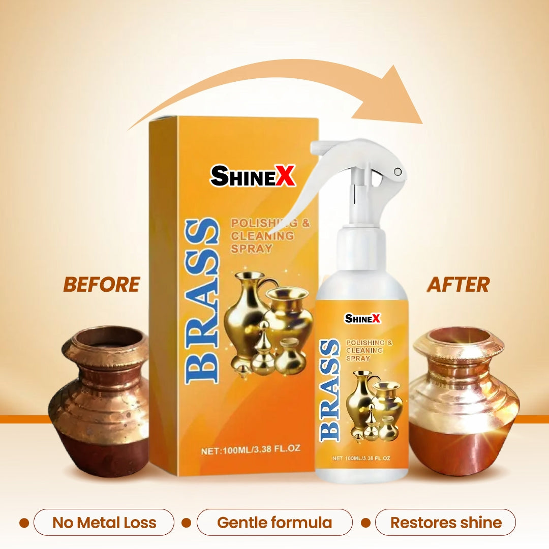 ShineX Brass Polishing & Cleaning Spray is a revolutionary cleaning solution designed to bring your brass and copper items back to their original luster with minimal effort. Whether it’s an antique brass lamp, copper cookware, or your favorite metal decor pieces, ShineX removes tarnish, oxidation, and dirt, restoring the radiant glow and warmth of your cherished possessions. Crafted with a powerful yet gentle formula, ShineX provides an easy and effective way to maintain and enhance the beauty of your brass and copper without harsh chemicals or abrasives.