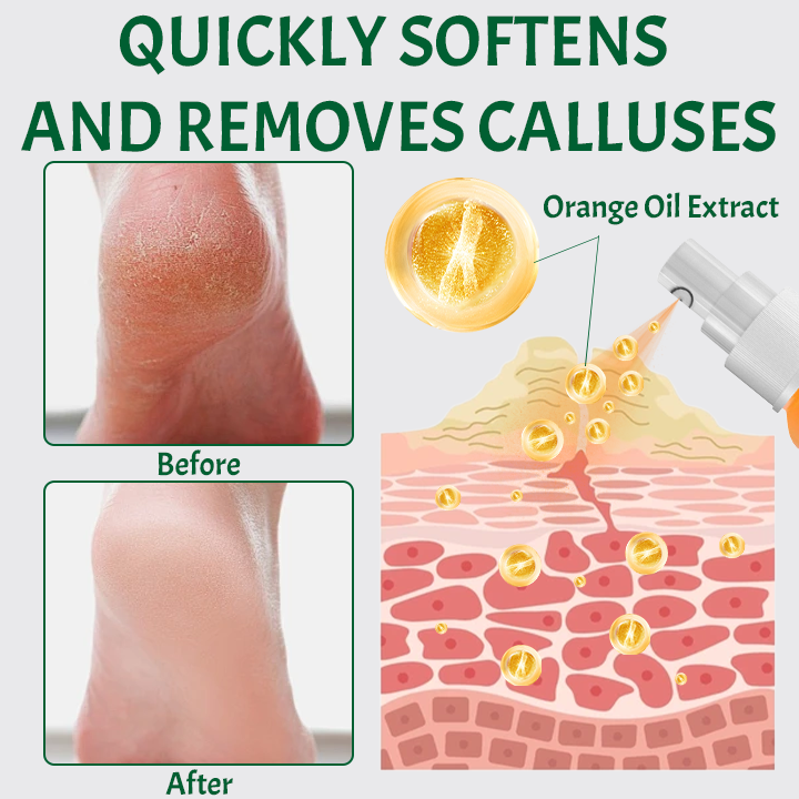 Are you suffering from calluses, cracks, and discomfort caused by long hours of standing, running, or wearing ill-fitting shoes? These issues not only impact your daily activities but also make you feel embarrassed and uneasy. Thick, hard calluses not only look unattractive but can also cause pain and discomfort, potentially leading to foot skin problems. Don't let calluses trouble your feet anymore. Use Ceoerty™ SmoothFeet Callus Remover Spray to easily solve foot problems and restore the smoothness and health of your feet. Ceoerty™ delivers amazing results!